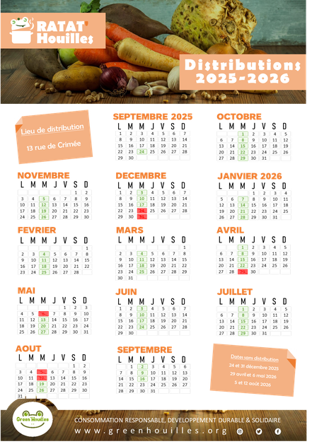 Comme chaque année, il n'y aura pas de distribution lors de certaines vacances scolaires.